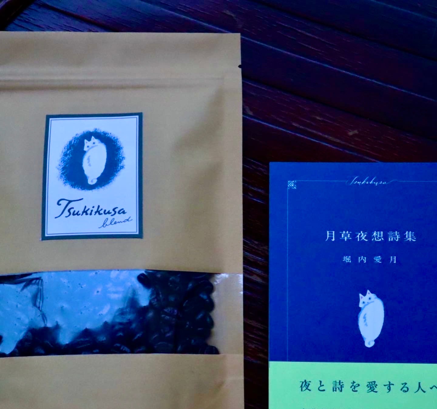 『月草夜想詩集』と『月草ブレンド100g』のセット販売です。